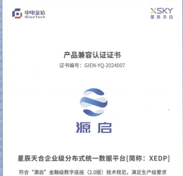 服務于金融新核心系統 XSKY星辰天合與中電金信完成產品兼容認證